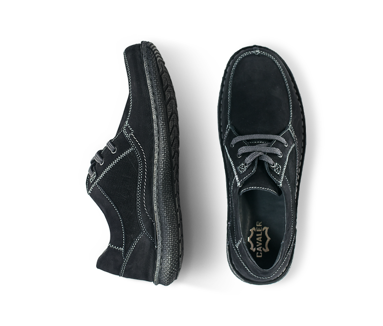 Черното е символ на сила и решителност. В тези обувки на Кавалер тъмната естествена кожа и здравото ходило правят пътуванията сигурни и ползотворни.